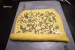 Détendre la crème pâtissière à l’aide d’un fouet, puis étalez-la à l’aide d’une palette coudée sur le rectangle de pâte. Saupoudrer de pépites de chocolat en quantité suffisante et roulez-la en formant un boudin.