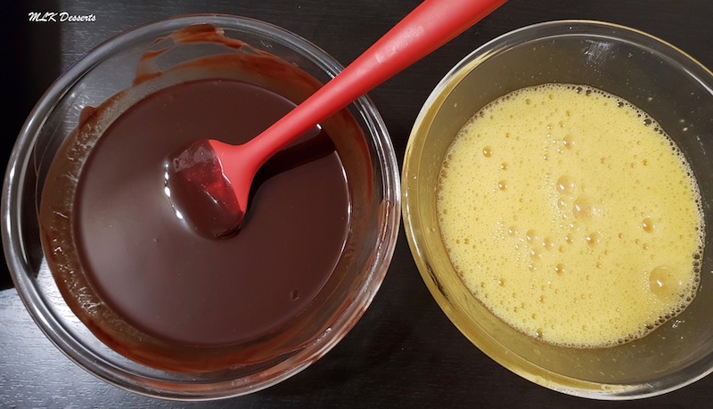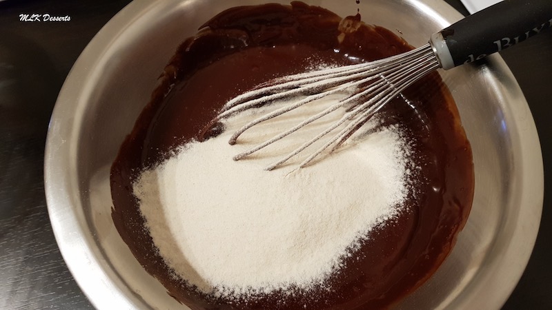 Ajouter le chocolat + le beurre fondu et mélanger à l’aide d’un fouet.