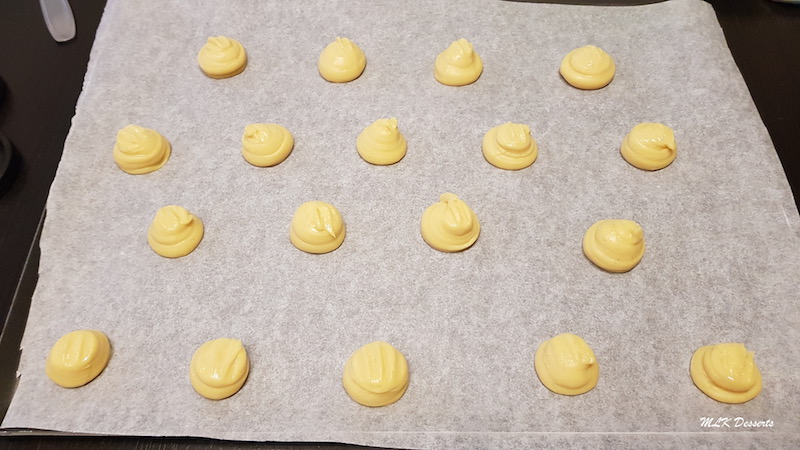 Une fois que votre pâte à choux est prête, mettez-la dans une poche à douille munie d’une douille unie de 8 mm et former des boules de 2 ou 3 cm de diamètre. Pocher le nombre nécessaire dont vous allez avoir besoin.