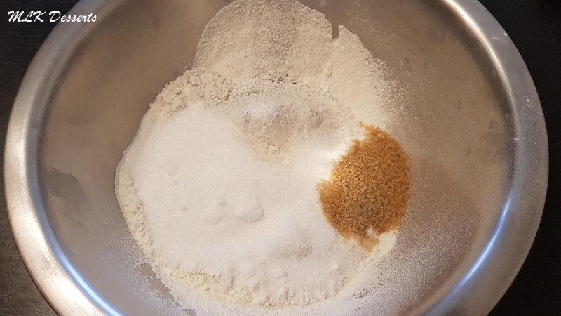 Dans un grand saladier, mĂ©langer la farine tamisĂ©e + levure chimique + la pincĂ©e de sel fin, le sucre + le sucre vanillĂ©, la noix de coco rĂąpĂ©e ou poudre d’amande ou poudre de noisette au choix selon vos goĂ»ts.