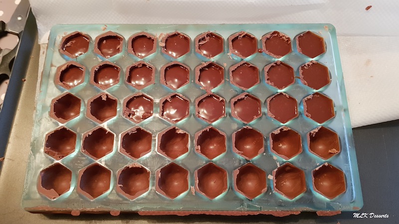 Renverser le moule au-dessus du bol de chocolat de manière à le faire s’égoutter et à évider les cavités.