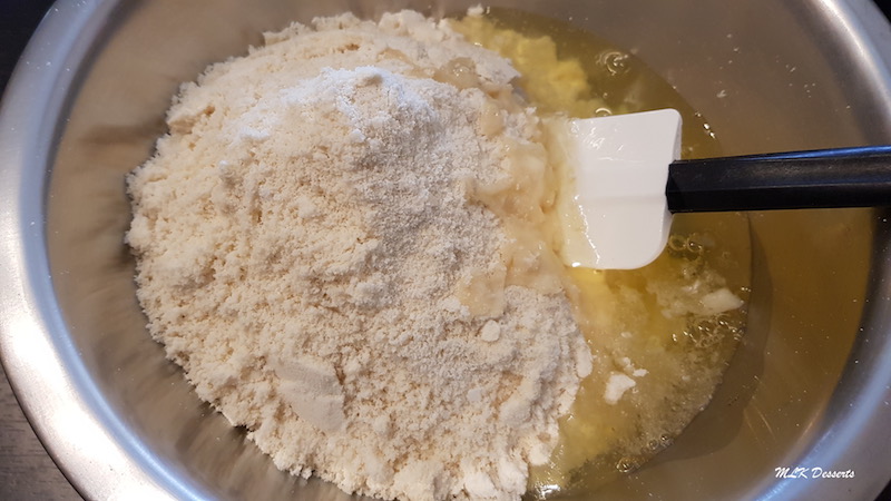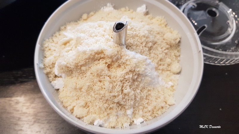 Dans un bol mélanger à l’aide d’une maryse les 120 g de blancs d’œufs avec la poudre d’amandes tamisées et le sucre glace tamisé (j’ai utilisé mon mixeur plongeant pour mixer le sucre glace et la poudre d’amande).
