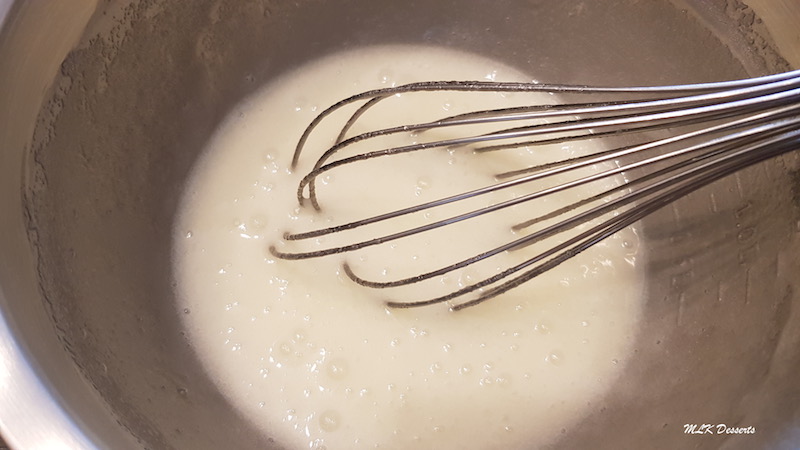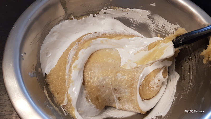 Incorporer une partie de la meringue au premier mélange et mélanger à l’aide d’une spatule, puis ajouter le reste de la meringue et mélanger à nouveau jusqu’à obtention d’un mélange bien lisse (j’ai oublié de prendre en photo avec l’ajout de la meringue colorée).
