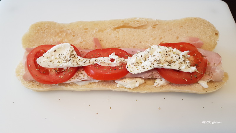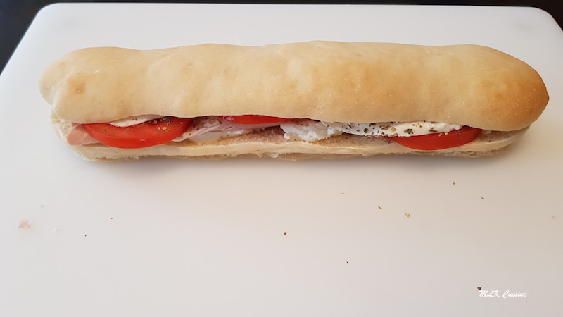 C’est un pain blanc et allongé. Il est coupé dans sa longueur, vous le garnissez au gré de vos envies, avec du jambon, du salami, de la mortadelle etc… agrémenté de mozzarella, de tomates, de salade…