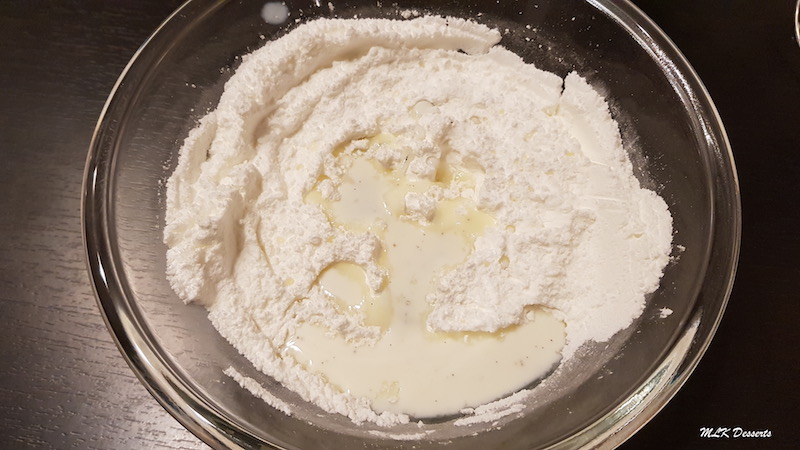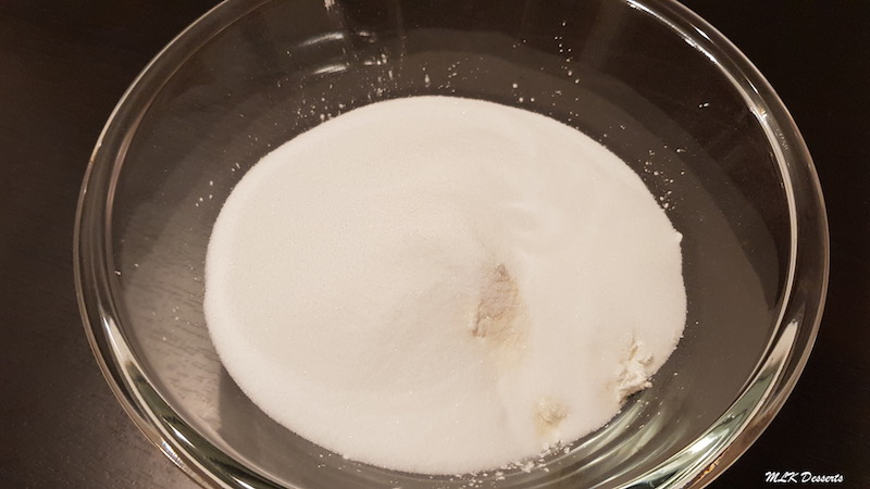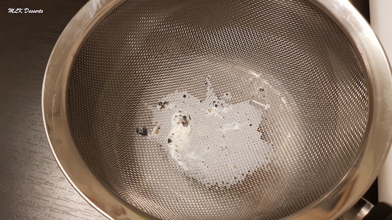 Le lendemain, dans un bol mélanger le sucre + maïzena + le sucre vanillé. Sortir le lait qui a infusé toute la nuit du réfrigérateur et versez-le au travers d’un chinois sur le mélange précédent, tout en mélangeant à l’aide d’un fouet.