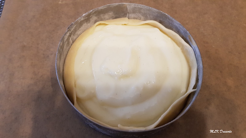 Verser l’appareil à flan tiède à l’intérieur puis enfourner à 180°C à four chaud pendant 40 minutes, selon votre four.