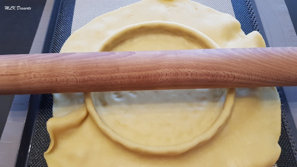 A l’aide de votre rouleau à pâtisserie, couper l’excédent de pâte en le faisant rouler sur les bords du cercle. La pâte doit bien être placée au fond du cercle.