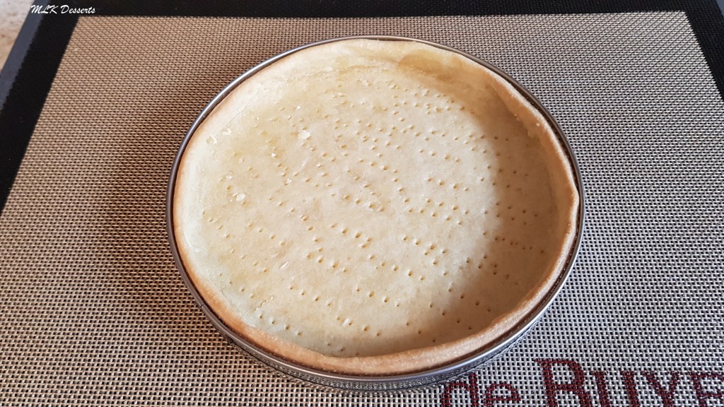 Retirer les billes de cuisson ou les légumes secs et également le disque de papier cuisson et remettre au four pendant encore 10 minutes, toujours à 180°C. Pour avoir une coloration de la pâte uniforme. Laisser refroidir.