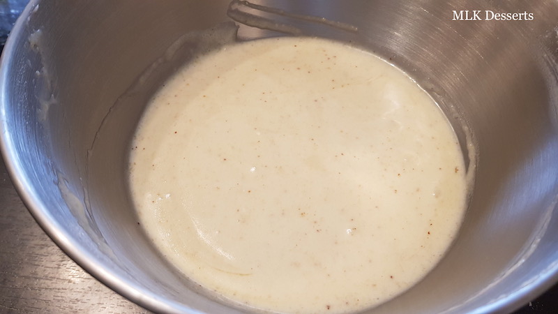 Ajouter les zeste d’orange ou l’extrait de vanille, la poudre de noisettes ou la poudre d’amandes et la farine tamisée, puis ajouter le beurre noisette.
