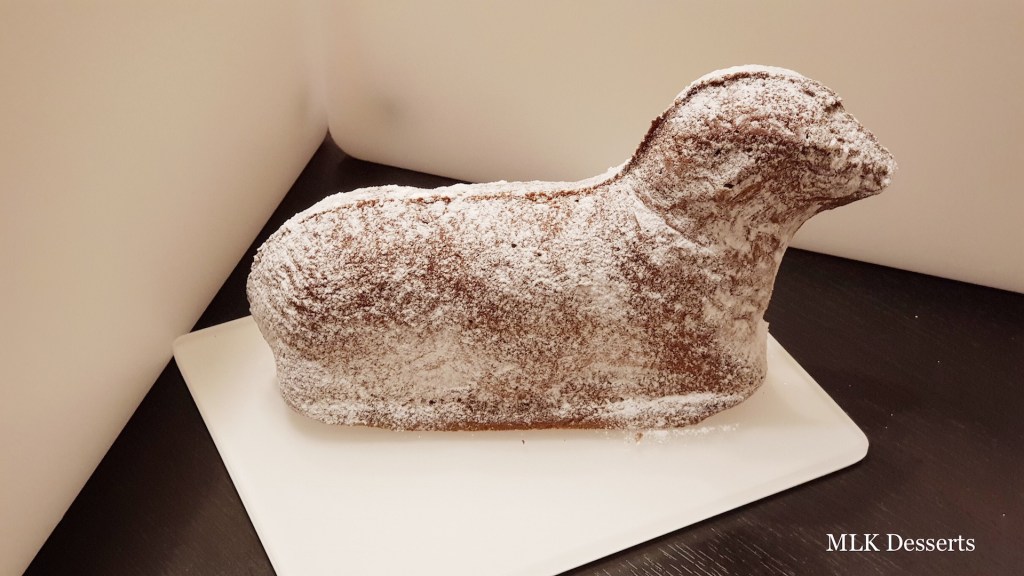 La tradition est de le cuire au four dans un moule en terre cuite. Je n’ai pas trouvé ce fameux moule, donc j’ai utilisé un moule anti-adhésif en forme d’agneau.