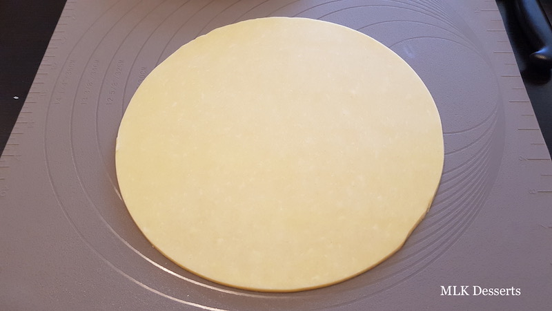 Prendre votre cercle à tarte et déposez-le sur votre pâte. A l’aide d’un couteau découpez-la à l’intérieur du cercle.