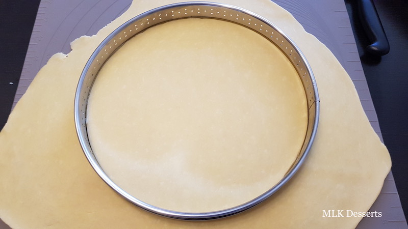 Pour la tarte qui est en photo, j’ai utilisé un cercle de 15 cm de diamètre, comme il me restait de la pâte brisée méthode par sablage, pour ne pas gâcher, j’en ai réalisé une petite. Mais la recette est faite pour un cercle de 24 cm de diamètre.