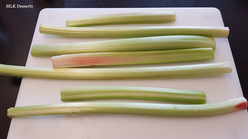 Laver vos tiges de rhubarbes couper chaque extrémités et épluchez-les à l’aide d’un petit couteau.