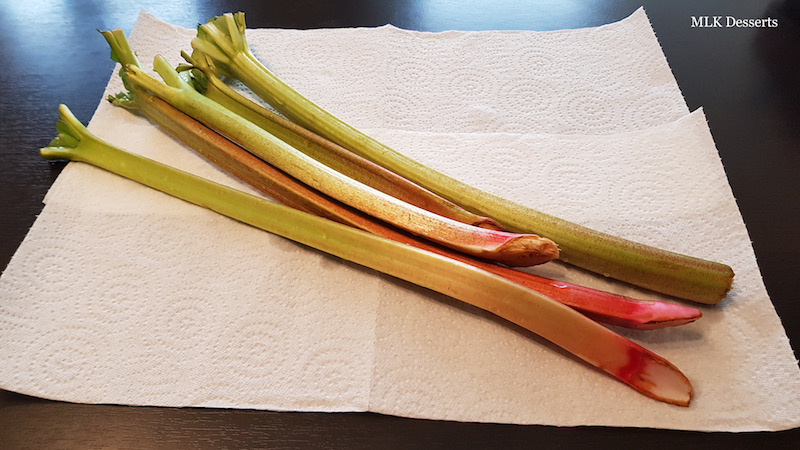 - 4 tiges de rhubarbes coupée en lamelles de +/- 3 à 4 mm d’épaisseur