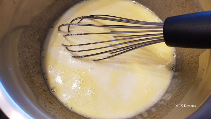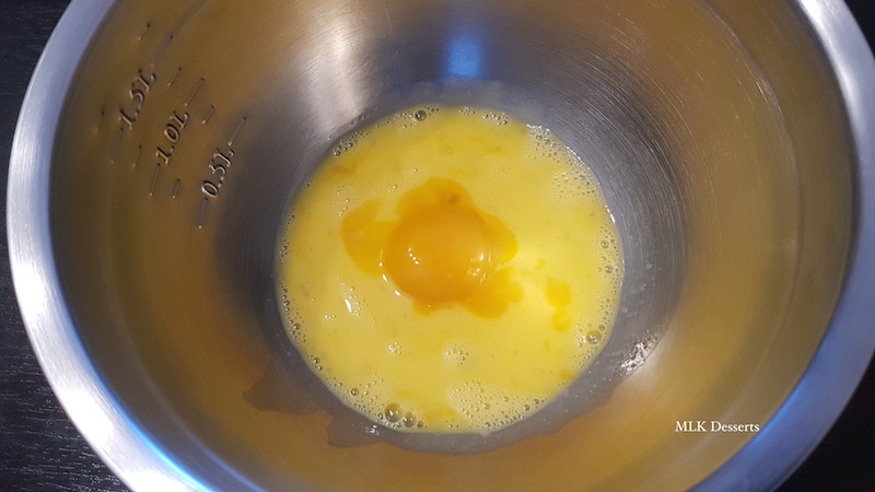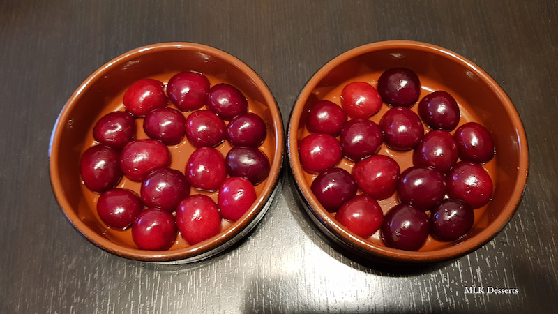 Commencer par laver, dénoyauter les cerises et réserver de coté. Dans un bol, mélanger à l’aide d’un fouet les 75 g d’œufs entiers , les 20 g de jaune d’œuf et les 62 g de sucre (soit vous coupez en deux les cerises, soit vous les laissez entières c’est comme vous le souhaitez).