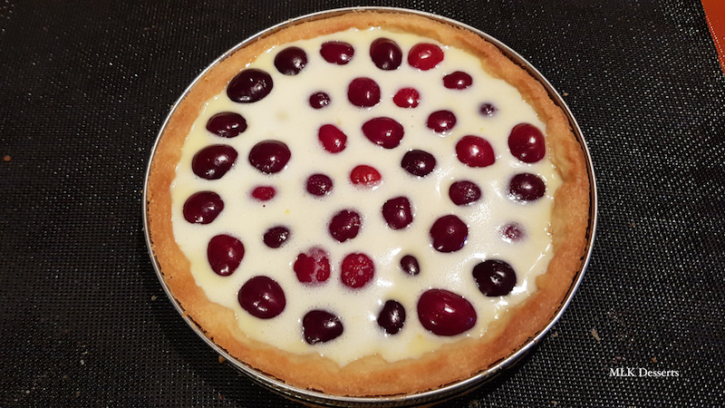 Cuisson : 20 minutes pour la cuisson à blanc de la pâte sablée et 40 minutes de cuisson pour le clafoutis aux cerises.