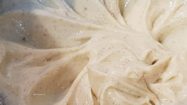 Ajouter l’autre moitié des graines de la gousse de vanille puis ajouter le rhum et mélanger toujours à l’aide d’un fouet.