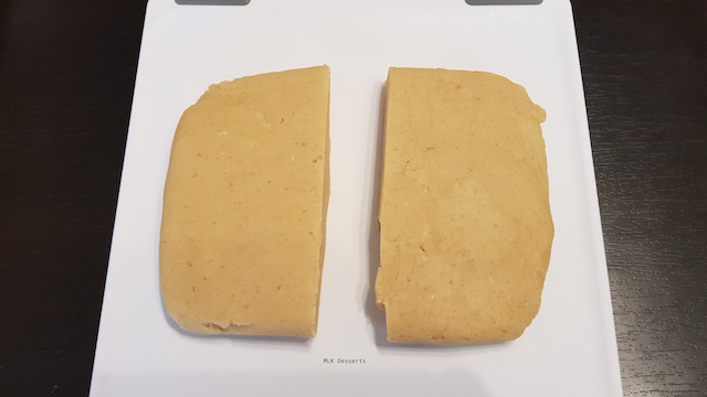 Beurrer un moule à manqué ou un cercle à entremet. Diviser la pâte sablée en deux parts égales. Etaler entre 2 feuilles de papier cuisson 2 disques de 20 cm de ∅ et 5 mm d’épaisseur.