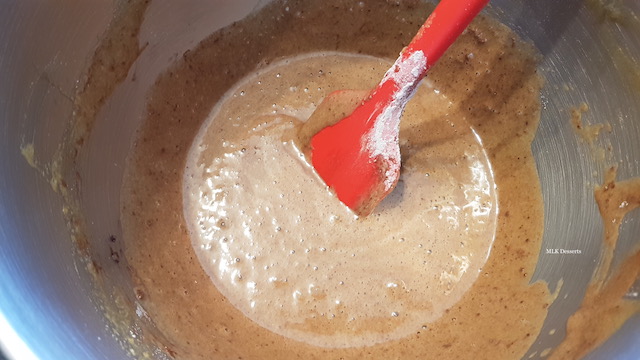 Incorporer le beurre fondu tiède tout en mélangeant à l’aide de la maryse. Verser la préparation dans le moule à cake que vous avez beurré et fariné au préalable.