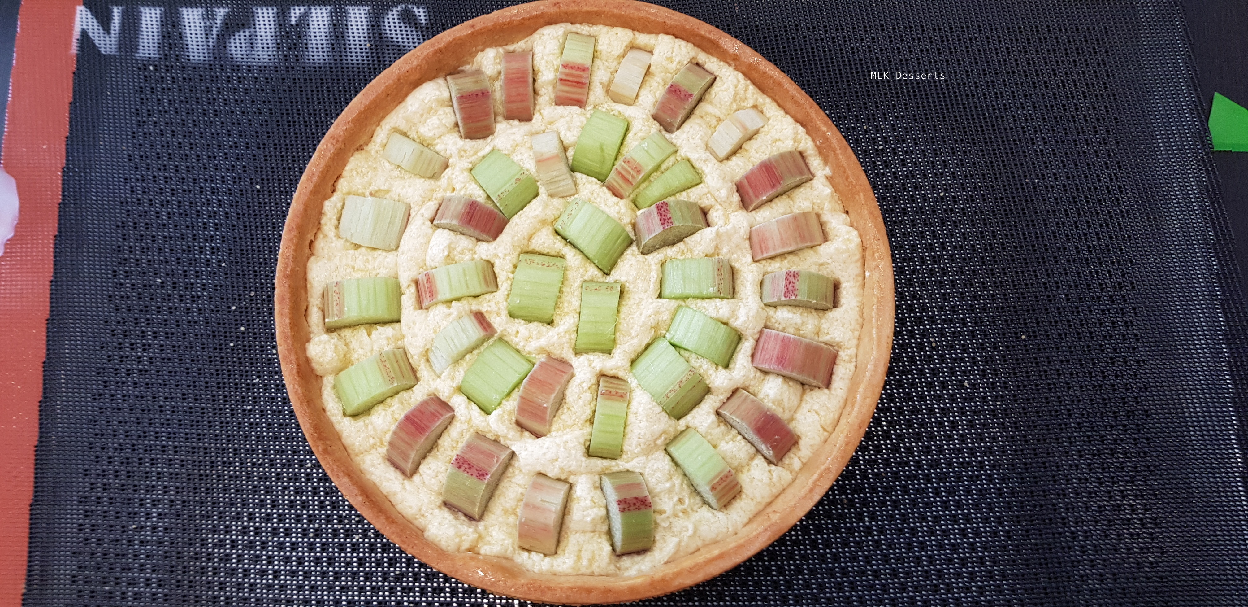 Prenez un peu plus de rhubarbe, pour moi 100 g, c'était un peu juste pour recouvrir la crème d'amande.