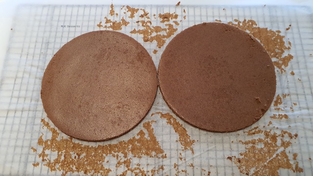 Dès la cuisson terminée, laissez-le refroidir sur une grille et ensuite à l’aide d’un cercle de 16 cm de diamètre, détailler 2 disques. Réserver de coté.