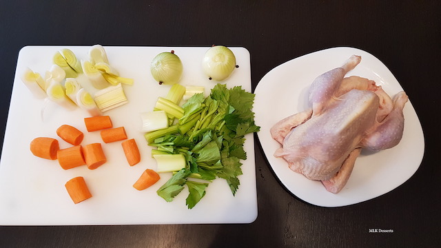 - 1 poule à bouillir de 1,5 kg