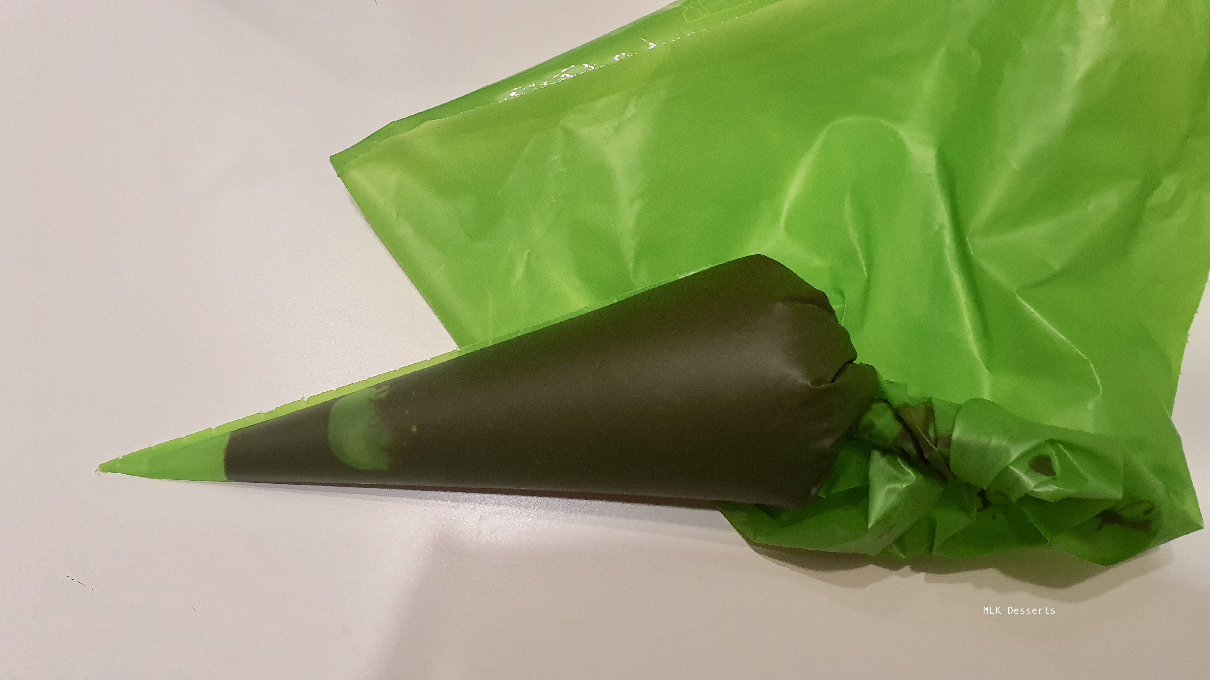 Sortir la ganache du réfrigérateur et versez-la dans une poche à douille. Emballer votre cake dans du film alimentaire et mettez-le dans le moule à cake à insert.