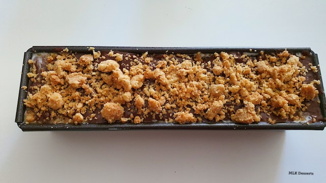 Sur une plaque à pâtisserie perforée ou classique recouverte d’un tapis silicone ou d’une feuille de papier cuisson, disposer le streuzel en l’émiettant.