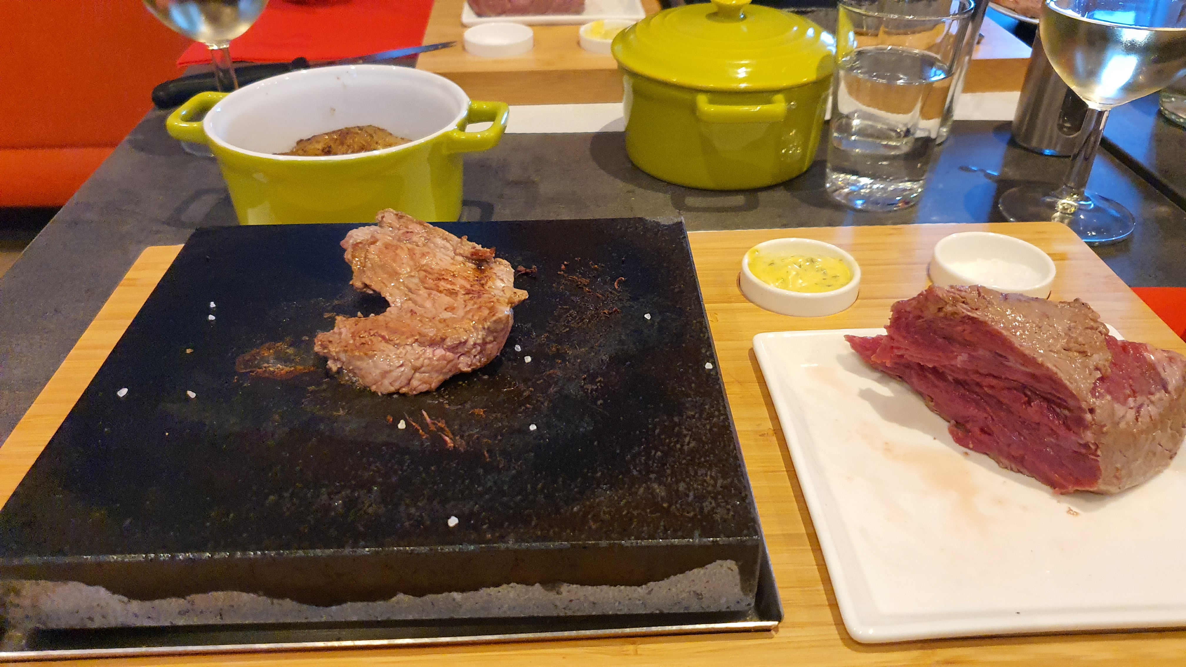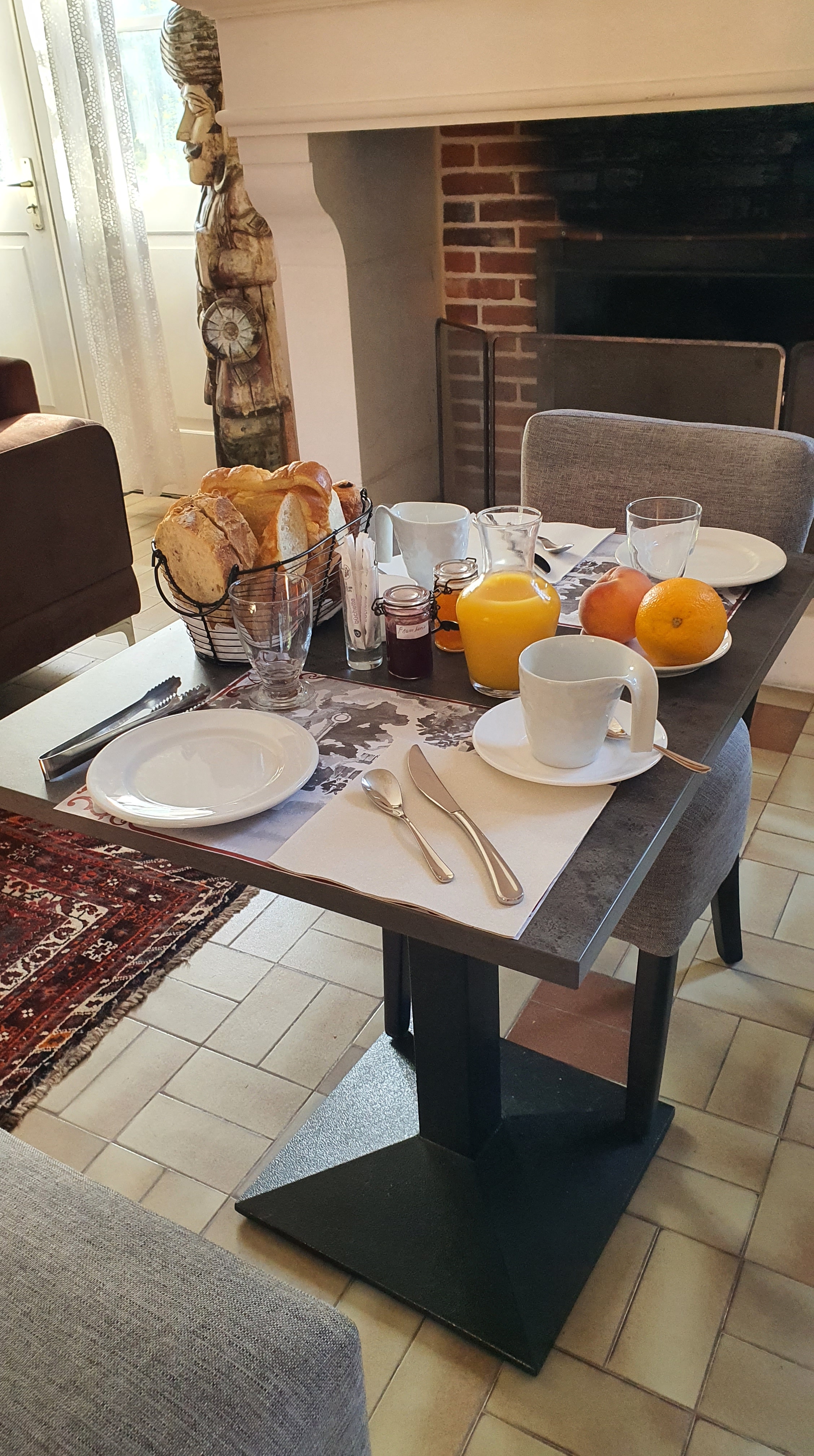 Petit déjeuner bien copieux. La veille de notre retour en Moselle, nous avons dîner au « château »… un excellent pavé de boeuf accompagné de pommes de terre grenaille et d’une salade… une bonne bouteille de vin blanc, un bourgogne aligoté… et un petit dessert.