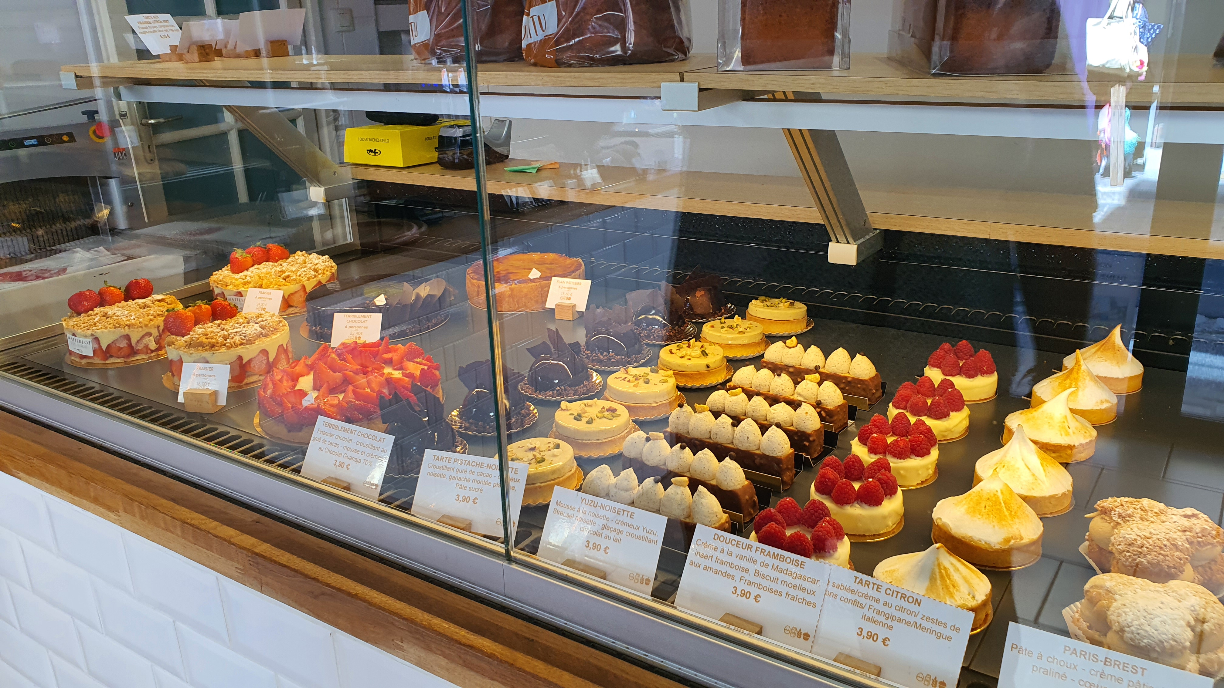 Je n’ai pas pu m’empêcher de réaliser quelques clichés de la vitrine. Vous y trouverez également toutes sortes de pains et bien d’autres encore…