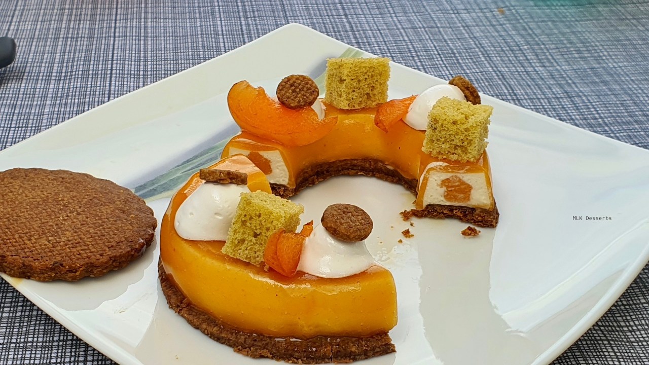 Entremet biscuit macaron amandes et crème mousseline vanille avec éclats de nougatine