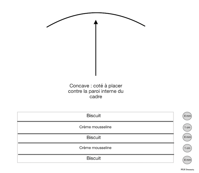 Entremet biscuit macaron amandes et crème mousseline vanille avec éclats de nougatine