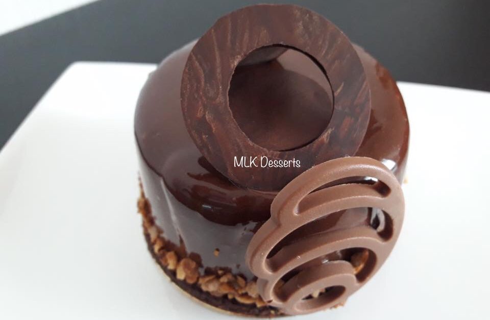 Mini entremet chocolat et insert praliné et crémeux chocolat noir