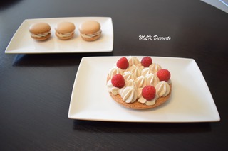 Entremet biscuit macaron amandes et crème mousseline vanille avec éclats de nougatine