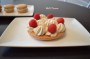 Choux crémeux chocolat noir et insert d’une framboise fraîche et son coulis