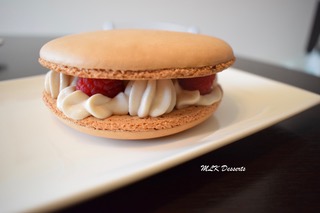 Entremet biscuit macaron amandes et crème mousseline vanille avec éclats de nougatine