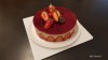 Entremet individuel mousse chocolat noir et insert confit fraise/rhubarbe