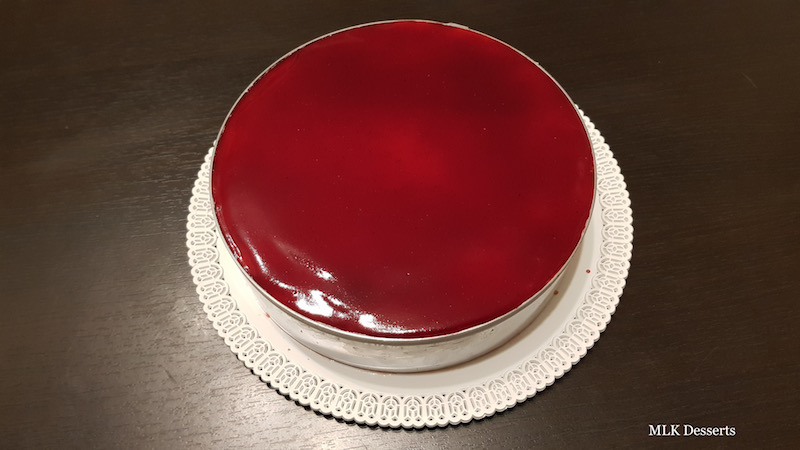 Entremet individuel mousse chocolat noir et insert confit fraise/rhubarbe