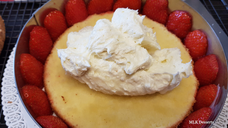 Entremet biscuit macaron amandes et crème mousseline vanille avec éclats de nougatine