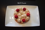 Entremet biscuit macaron amandes et crème mousseline vanille avec éclats de nougatine